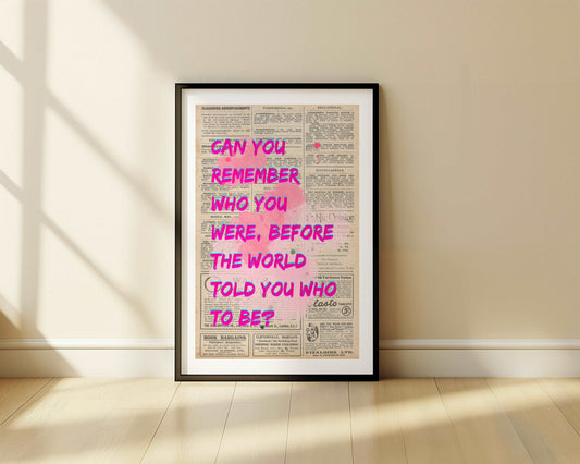 Can you remember who you were, before the world told you who to be? - Newspaper - Poster