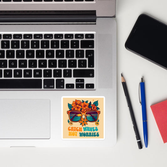 Catch Waves Not Worries (Beach Theme) - Square Cut Sticker