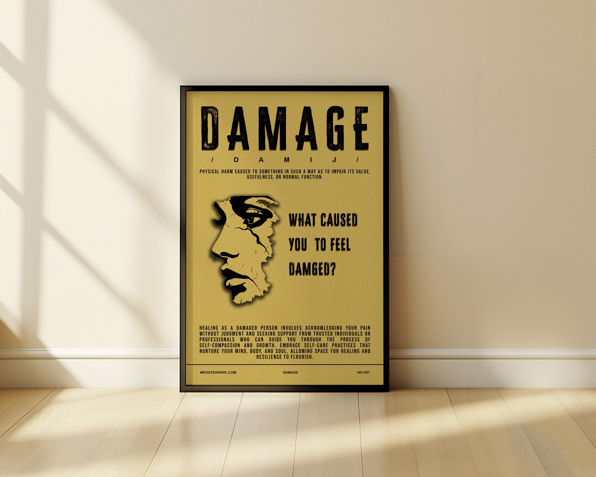 The poster depicts a hauntingly beautiful face, its features marred by cracks and fissures, symbolizing the scars of emotional turmoil. The once smooth skin is now fragmented, reflecting the inner struggles and battles fought. Yet, amidst the fractures, there's a glimmer of resilience, a silent testament to the strength found in vulnerability. The damaged face serves as a poignant reminder of the human capacity to endure and emerge stronger, echoing the journey of healing and self-discovery.